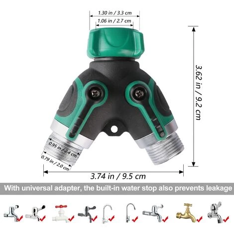 BDD Inverseur De Tuyau à 2 Voies Robinet De Raccordement De Tuyau à 2 Voies De Jardin Inverseur à 2 Voies Avec Poignée De Verrouillage Réglable