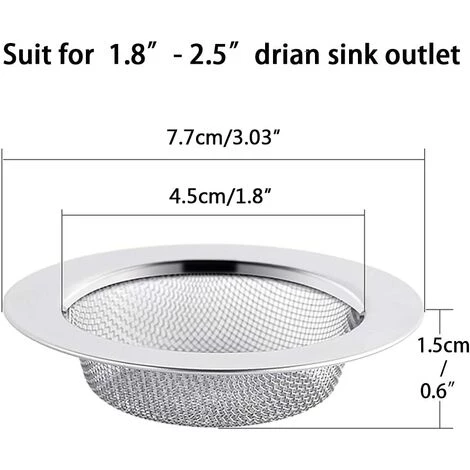 CONTENU DE LA LIVRAISON – Contient 2 filtre à évier en acier inoxydable de dimensions 7,5 cm (extérieur) x 4,5 cm (intérieur) x 1,5 cm (profondeur).