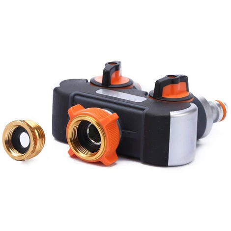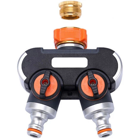 Inverseur de robinet de jardin, connecteur en Y, 3/4″ pour connecter 2 appareils, robinet de jardin à double sortie, adaptateur de robinet, connecteur en métal 1/2″ inclus