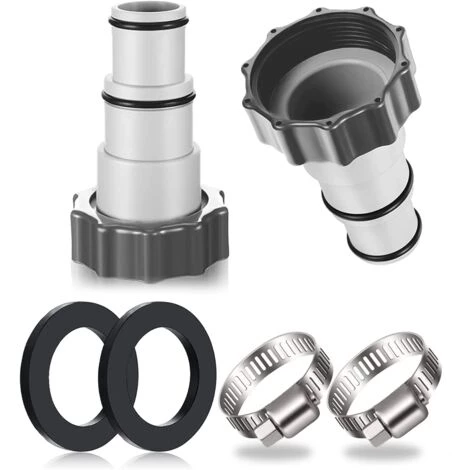 【Kit d’adaptateurs pour tuyau de piscine】 Lot de 2 adaptateurs de piscine, assez pour être utilisés ou remplacés dans votre vie quotidienne. 2 colliers de serrage et 2 coussinets en gel.