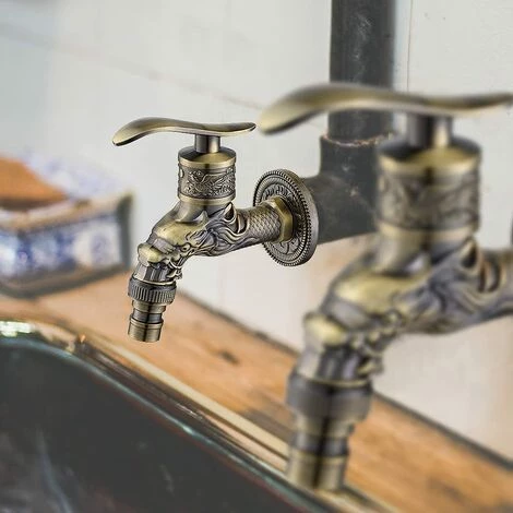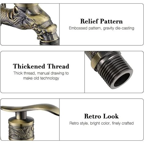 Laiton de haute qualité : lancien robinet sculpté dragon composé dun boîtier en laiton massif massif et dun alliage de zinc, durable, résistant à la corrosion et à loxydation.
