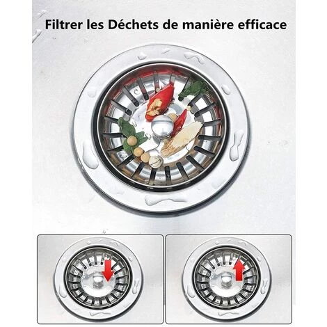 - [Filtre d’évier]: Fabriqué en acier inoxydable de haute qualité, avec des joints en caoutchouc, épais, robuste et durable, difficilement déformable et longue durée de vie.[Taille du bouchon d’évier] : le diamètre extérieur du filtre de l’évier est de 80 mm, ce qui convient au diamètre de l’évier de 79,3 à 82 mm. Veuillez vérifier la taille avant d’acheter.[Filtre d’évier de cuisine facile à utiliser] : les joints en caoutchouc et les roulements à billes permettent à ce filtre d’évier d’être utilisé comme bouchon de vidange ; il suffit de pousser le filtre vers le bas pour boucher le trou.[Filtration efficace des ordures] : chaque évier a 18 trous, qui peuvent filtrer efficacement les ordures, tout en faisant couler l’eau pour garder l’évier dégagé.[Large plage d’utilisation] : ces deux filtres de drainage peuvent être installés dans les anciens éviers, baignoires et lavabos. La surface lisse rend le nettoyage facile et pratique.