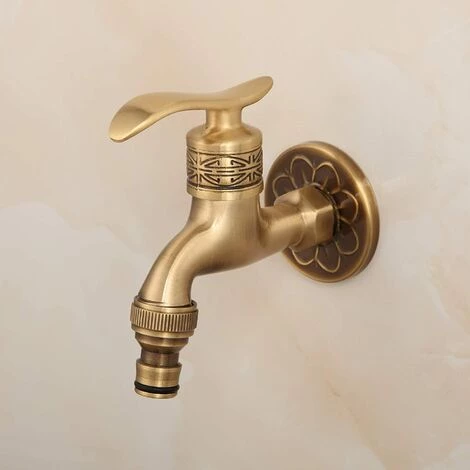 GALOZZOIT Robinet D’eau Froide Laiton Antique Mural Montage Levier Poignée Robinet De Machine à Laver Pour Salle De Bain-Court