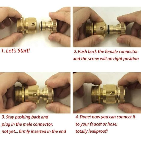 Le raccord en laiton facile à raccorder en laiton de all pouce convient à tous les raccords standard de tuyau de jardin de pouce.Travail pour tuyaux de jardin, arroseur, nettoyeur haute pression, véhicules de loisirs, caravane, bateau, arbre, chauffe-eau, robinets, arroseur de pelouse, buse d’eau, robinet, autre jardin accessoire