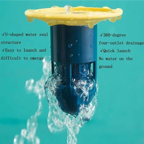 【Structure D’étanchéité à L’eau en Forme de U】 Carré siphon de sol anti-odeur, drainage à 360 degrés avec quatre sorties, lancement rapide et aucune accumulation d’eau au sol.