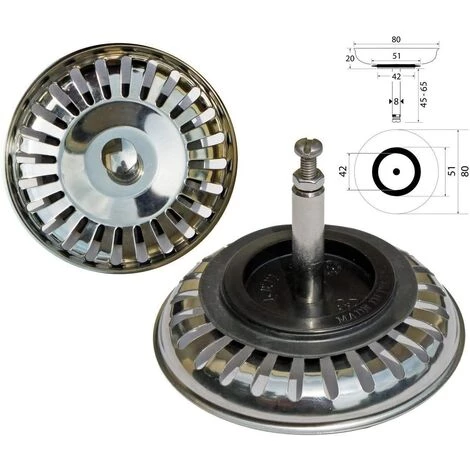 Panier universel drain-diamètre : 80 mm-pour éviers avec commande excentrique-acier inoxydable.