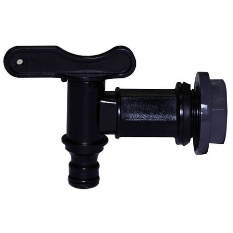 Robinet mâle noir en PEHD , 3/4″ pas gaz ( diametre hors tout de 2.5cm environ au niveau du filetage ), livré avec un écrou