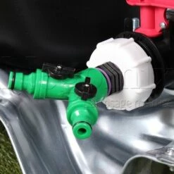 Cet ensemble est composé du bouchon adaptateur, d’une double sortie arrosage mâle avec vanette 1/4 tour séparée pour connecter directement vos tuyaux d’arrosage à votre cuve de récupération d’eau.