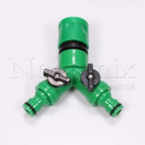 Il se place directement sur votre robinet d’arrivée d’eau grâce à l’embout femelle type « gardena ». La sortie est alors transformée, en 2 sorties type »gardena » male. Chaque sortie « gardena » est équipée d’une vannette 1/4 tour ce qui vous permet de gérer votre zonage d’arrosage!!!