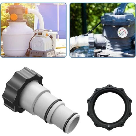 Diamètre applicable : les adaptateurs de tuyau de piscine peuvent être utilisés à la place des tuyaux en spirale, adaptés au raccordement des tuyaux de piscine, pour les tuyaux de piscine de 38 mm et les tuyaux de piscine de 32 mm avec filetage mâle de 2 pouces, tels que les systèmes de filtration standard.
