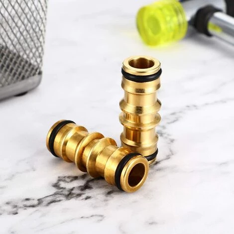 2 ensembles de raccords en laiton de tuyau de tuyau de jardin double mâle sont fabriqués en laiton, ce qui est solide et durable.