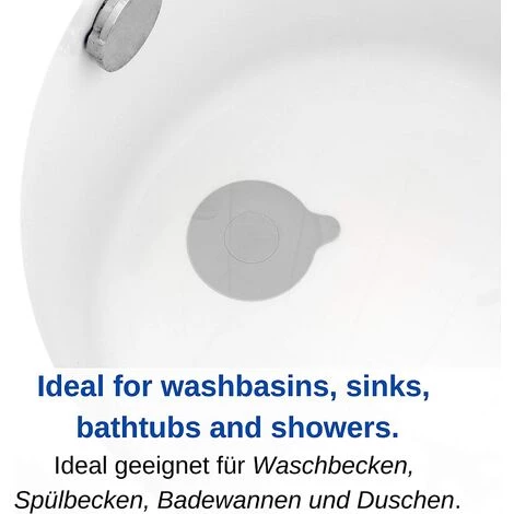 PERLE RARE Bouchon De Vidange Pour Baignoire, Douche, évier De Cuisine Et Lavabo De Salle De Bain, Bouchon D’évier Amovible, Empêche L’eau De S’écouler, Ø 13 Cm, Pour Trous D’écoulement Jusqu’à 90mm, Gris + Bleu