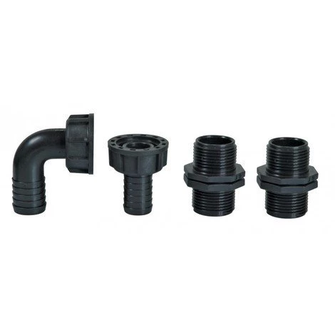 Ce kit de raccords 1″ en plastique est conçu pour les tuyaux de diamètre 25 mm. Il contient 2 mamelons double-mâle, un raccord droit et un raccord coudé à écrous tournants.