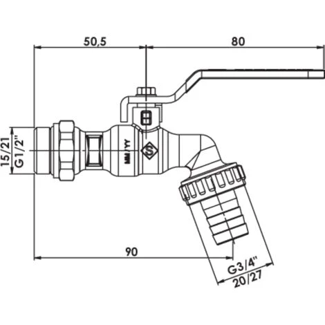 Arrivée 15/21 (1/2″). – Nez 20/27 (3/4″) ou tuyau Ø15 mm.